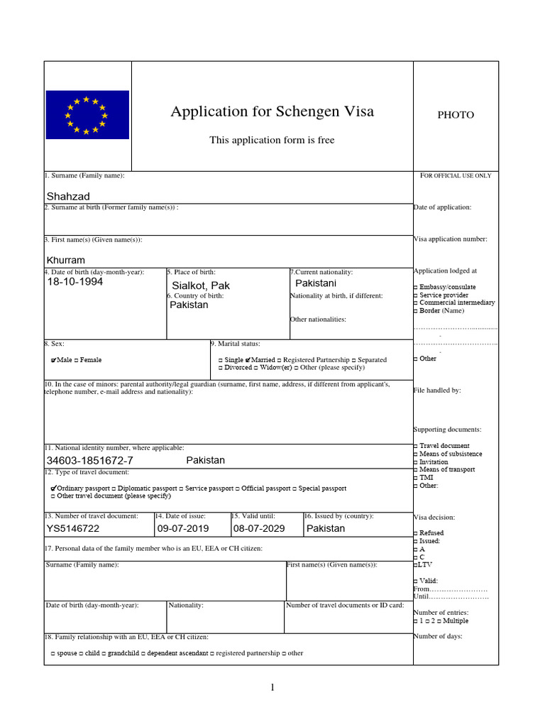 Sample Schengen Visa Application Form Filled PDF airSlate SignNow
