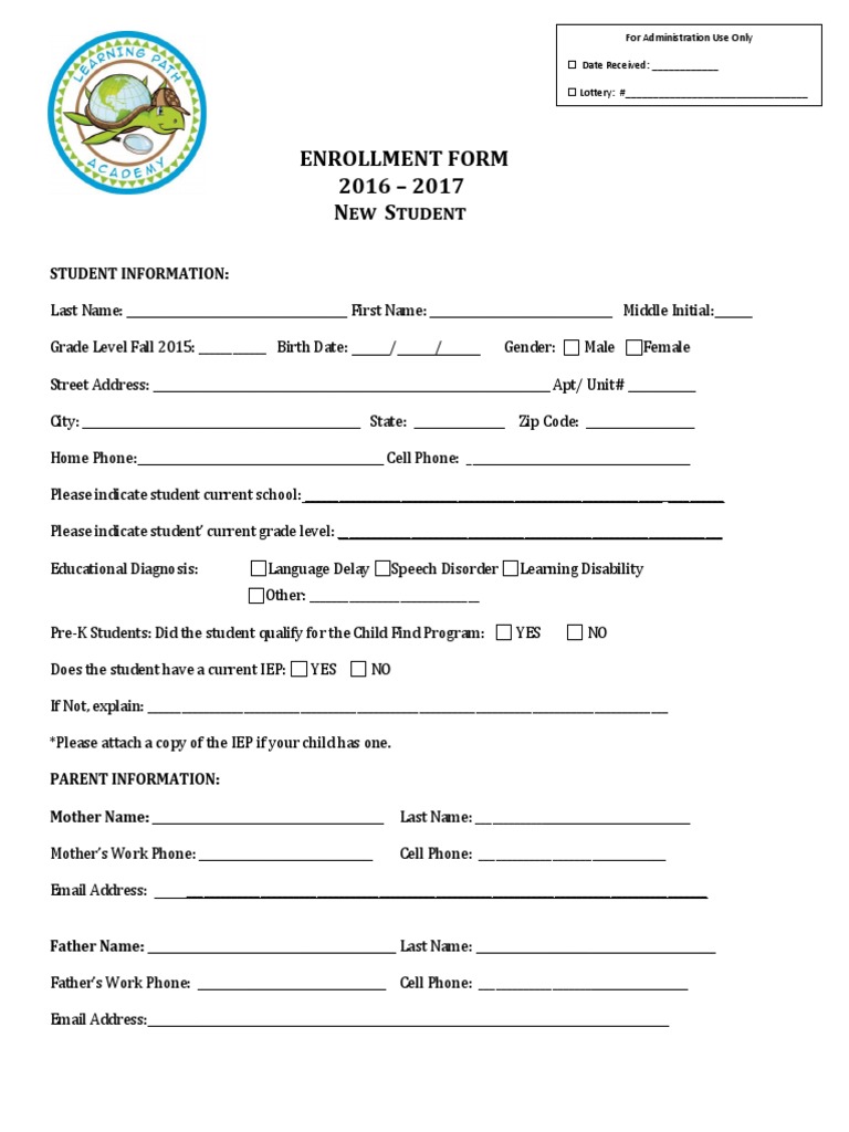 Student Enrollment Form Fill Out, Sign Online and Download PDF